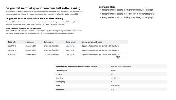 Dette modul bruges til brødtekst, tables og bulletpointed lists.