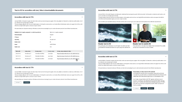 Accordion modulet kan indeholde både billedmodulet og tekstmodulet. Det er editorbestemt om man vil have at modulerne er ekspanderet eller kollapset ved load af siden.