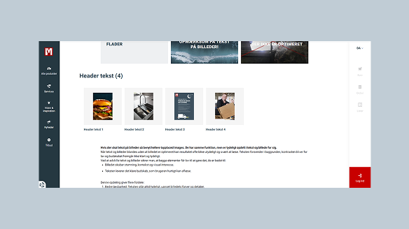 Billedmodulet kan bruges sammen med tekst, enten med billeder i 16:9 format og/eller med en YouTube video der indsættes som link.