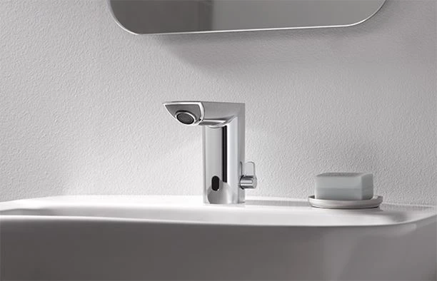 Med dette berøringsfrie armatur opnår dine kunder den absolut bedste hygiejne, da der ikke er et håndtag, der skal tændes/slukkes. Derudover bidrager det berøringsfrie design også til at gøre en forskel for dit vandforbrug – og dermed miljøet. Armaturets sensor registrerer når hænderne er i nærheden af armaturet, så der automatisk spares vand lige så snart hænderne ikke er i nærheden. Fx når hænder sæbes ind eller der børstes tænder.
