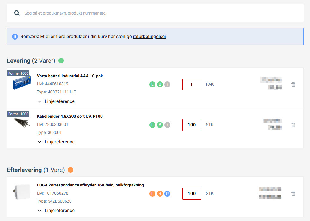 Det betyder bl.a., at du får tydelig besked om opdelte kabellængder, forslag ved manglende lagerbeholdning – og at du nu kan tilføje samme produkt flere gange i kurven, med forskellige enheder eller antal.