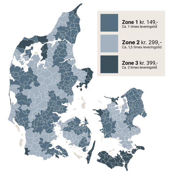 Er du i ’Zone 1’, går der ca. 1 time, og så har du dine varer. I Zone 2 og 3 går der 1-2 timer. Det er jo ikke for sjov, vi kalder det Ekspreslevering!