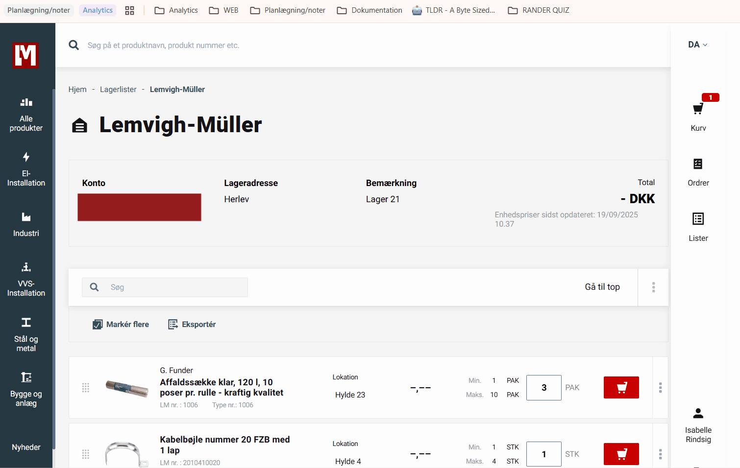 Lagerlister er til dig, der ønsker en enkel og smart måde at holde styr på dit lager. Med lagerlister samler du dine varer ét sted og får overblik over beholdning, lokationer, priser og meget mere. Lagerlisterne er kun tilgængelige på vores hjemmeside, og du finder dem i menuen til højre under "Lister".