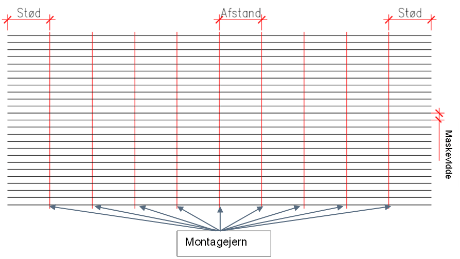 - Afstand mellem montagejern divideret med Maskevidden skal være et heltal
